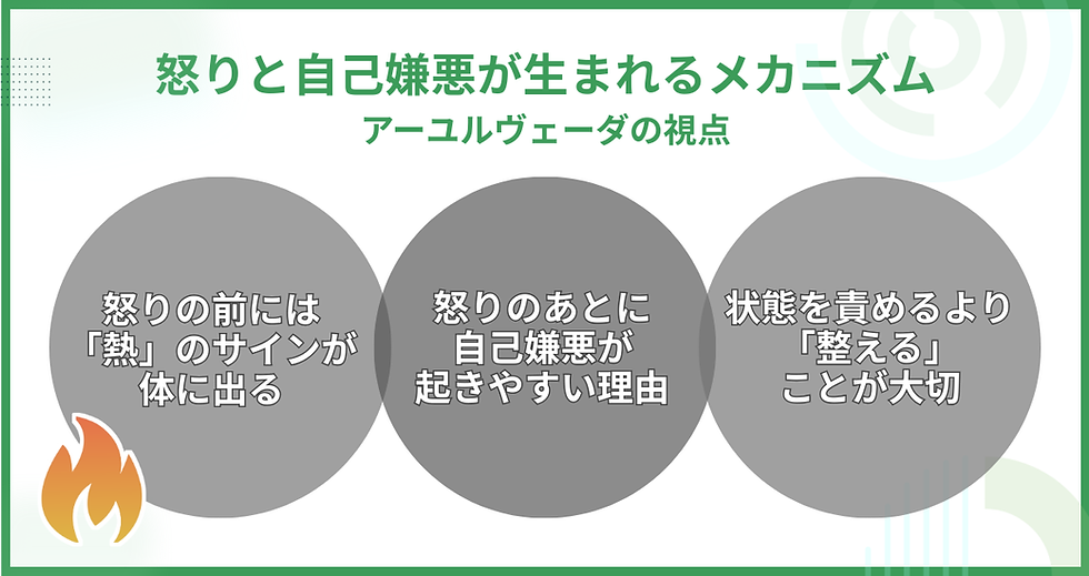 怒った後に「なんであんなことを言ってしまったんだろう」と後悔すること、ありませんか。アーユルヴェーダの視点では、これは人格の問題ではなく、火(ピッタ)が一時的に強くなった結果です。